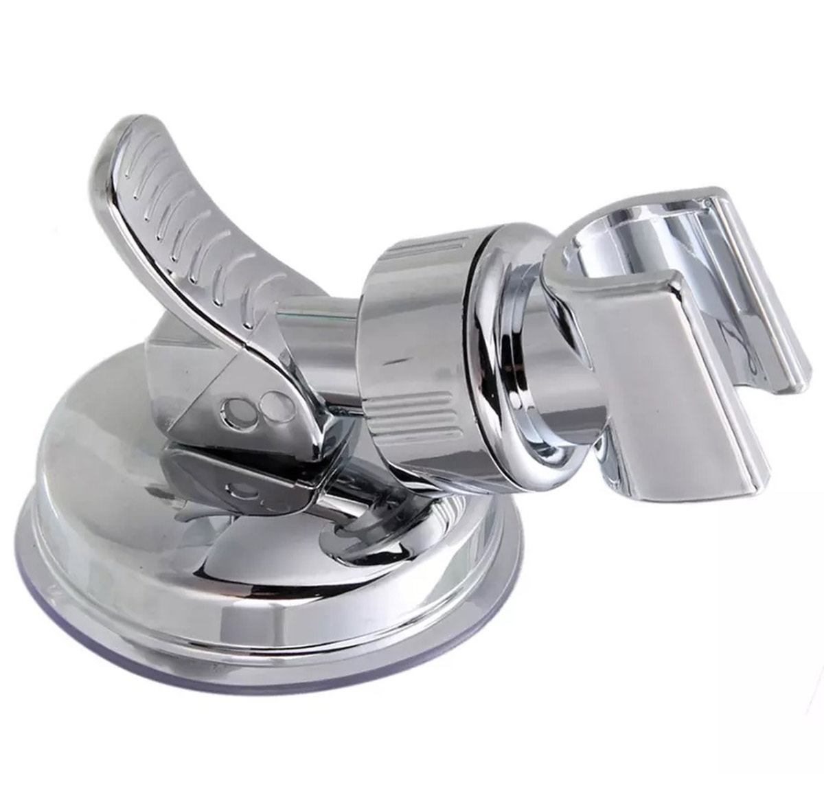Suport compact pentru duș. Echipat cu o ventuză puternică, datorită căreia putem atașa suportul oriunde. Un clips special permite detașarea ușoară a suportului de pe perete. Fabricat din plastic solid care imită oțelul.