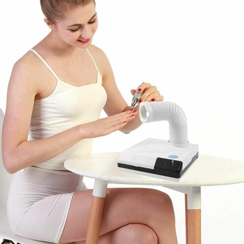 Aspirator profesional pentru praf 60W cu iluminare LED, conceput pentru saloane de manichiură și cosmetică. Echipat cu tub flexibil și filtru interschimbabil, îndepărtează eficient praful și particulele rezultate în timpul lucrului, menținând curățenia spațiului și protejând sănătatea utilizatorului. Iluminarea LED integrată facilitează realizarea tratamentelor de precizie.