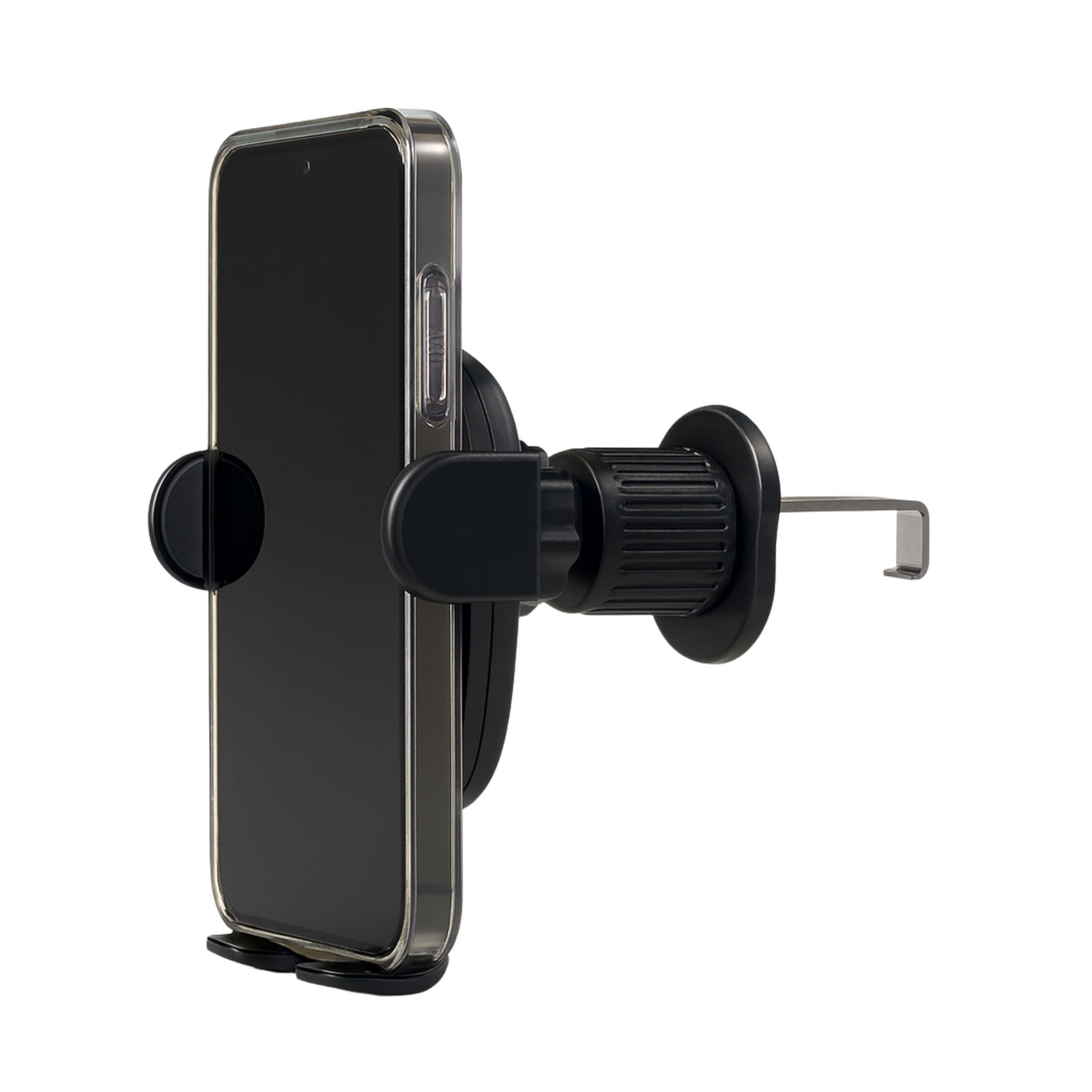 Suport auto universal pentru telefoane mobile, prevăzut cu o clemă robustă care permite prinderea fermă pe orificiul de ventilație. Oferă un acces facil la telefon în timpul condusului, iar sistemul de rotire la 360° asigură poziționarea exactă a dispozitivului. Brațul reglabil sporește flexibilitatea și confortul în utilizare. Compatibil cu toate smartphone-urile standard.